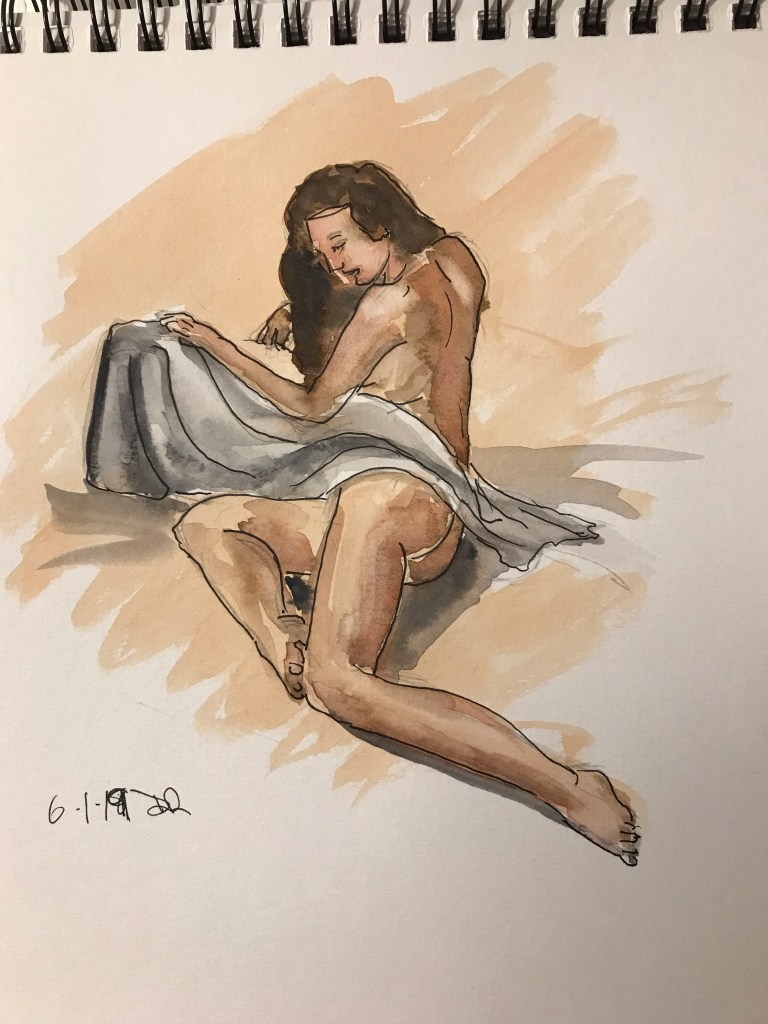 I always expect to have plenty of time on a Sunday but it never works out that way. I did find the time to do a couple of watercolour figure studies. Not sure I should use the pen to finish them off, does it mean I have no faith in my painting? Probably.