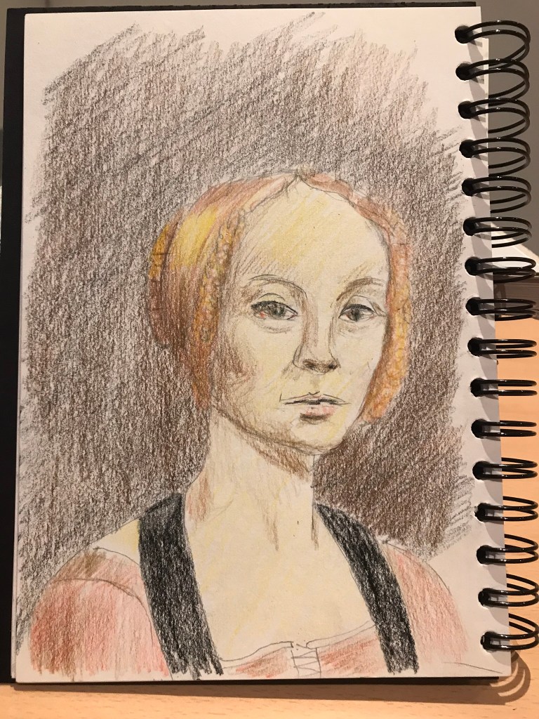 16 January 1 January 16, 2019 Written by Roberts31.com I don’t think Leonardo Da Vinci had access to coloured pencils but if he had I am sure he would have made a better job of the portrait. My excuse is that I did it at work and didn’t have much time! I think I have made her look old. Share this: Click to share on X (Opens in new window) X Click to share on Facebook (Opens in new window) Facebook Like Loading...