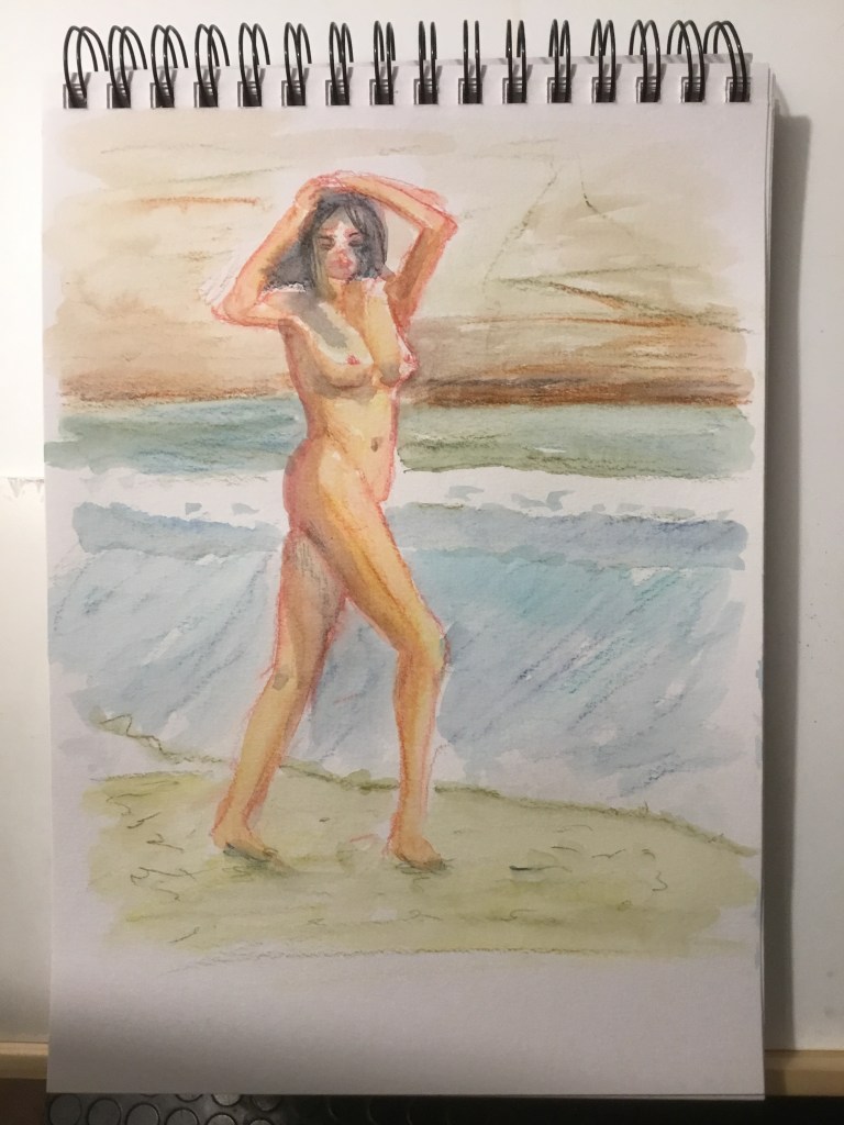 Inktense of course, that’s auto spell for you. Yes her thigh is a bit long but it was only a quick sketch. I am happy with her boobs!