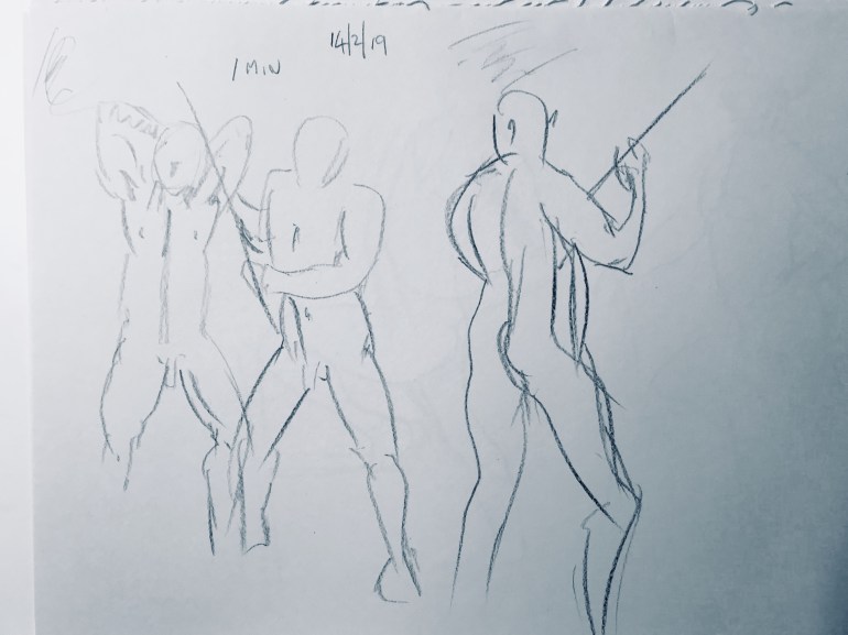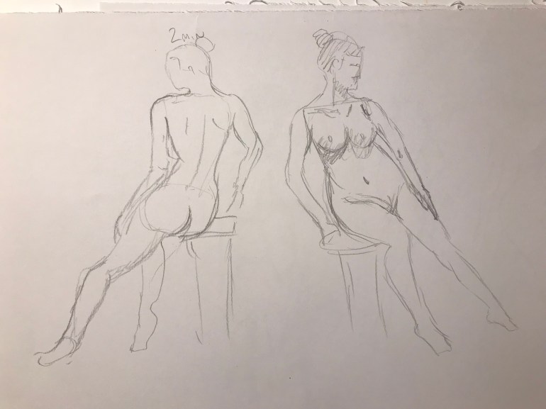 I can see you don’t like drawing willies! Picture no 2 looks like he’s got a bit of a donkey dick! But for such short time sketches, I think you’ve done really well. Gill x