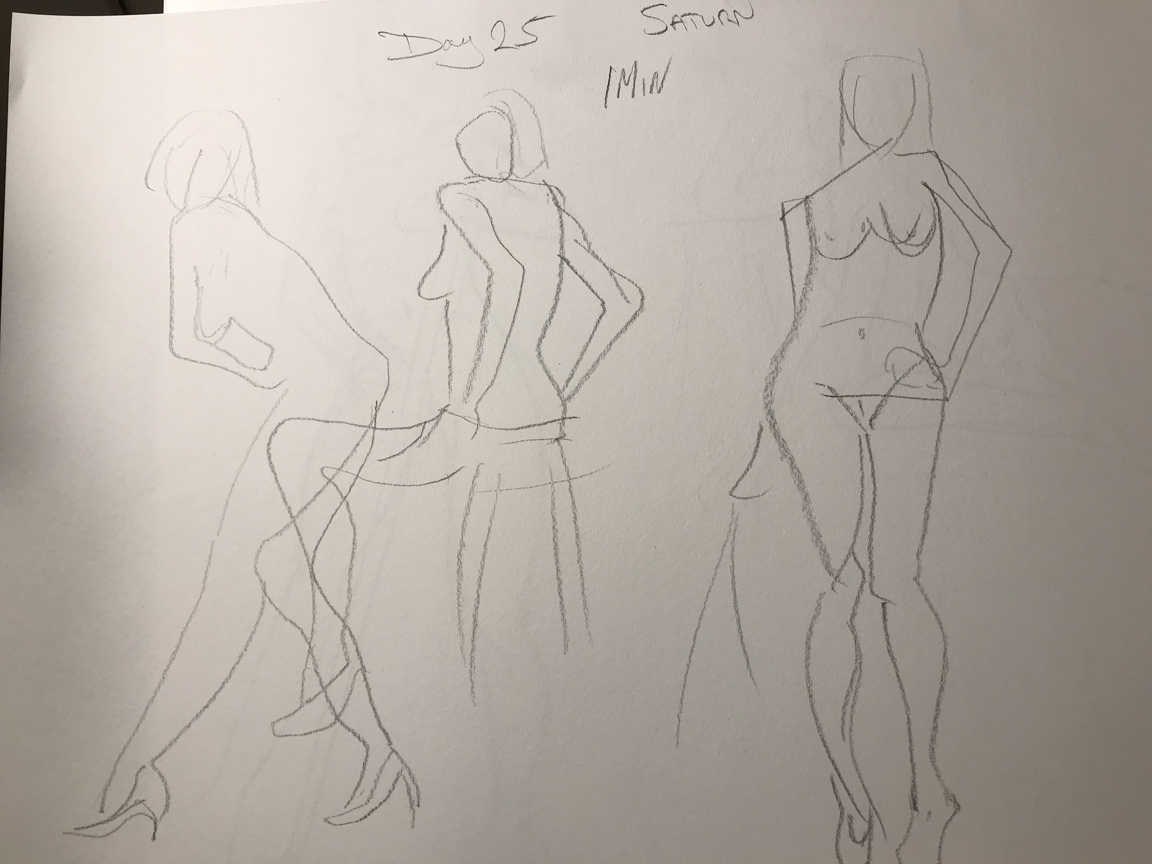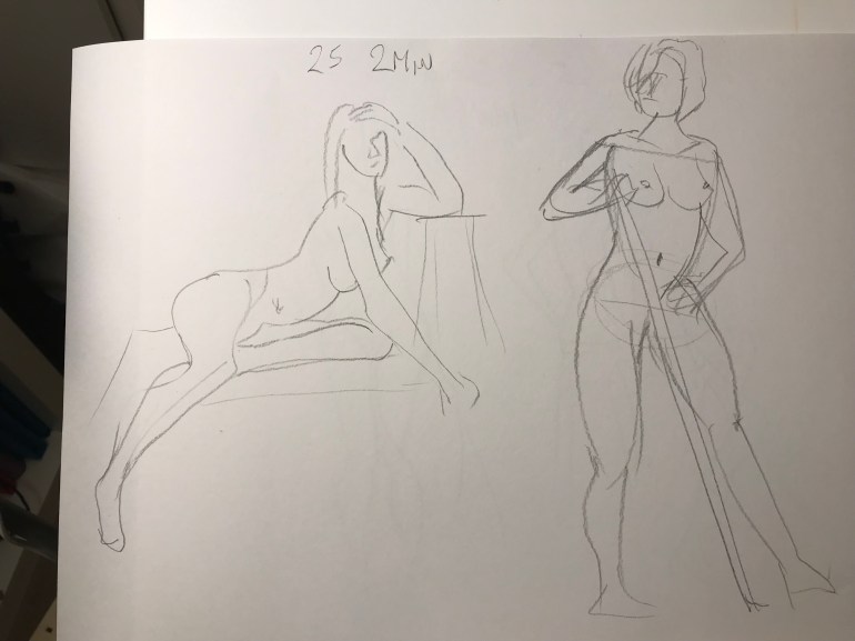 When I tried to watch the figure drawing session on you tube it wouldn’t let me. It wanted me to verify I am over 18 but when I tried it just went round in circles. Eventually I googled it and found I had to clear caches and cookies that I didn’t know I had! By the time I did all of this I had lost all enthusiasm and this shows in the drawings.