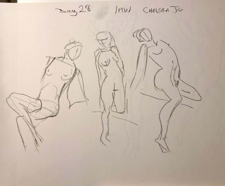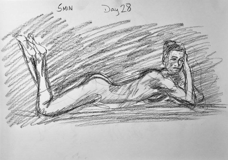 Last day of the challenge and I have managed to keep up with drawing every day for the month. It has been very enjoyable if a little frustrating at times. I can see an improvement over the month although today’s efforts are not great . I used a Conte pencil so I can’t use watercolour to improve on the drawing.