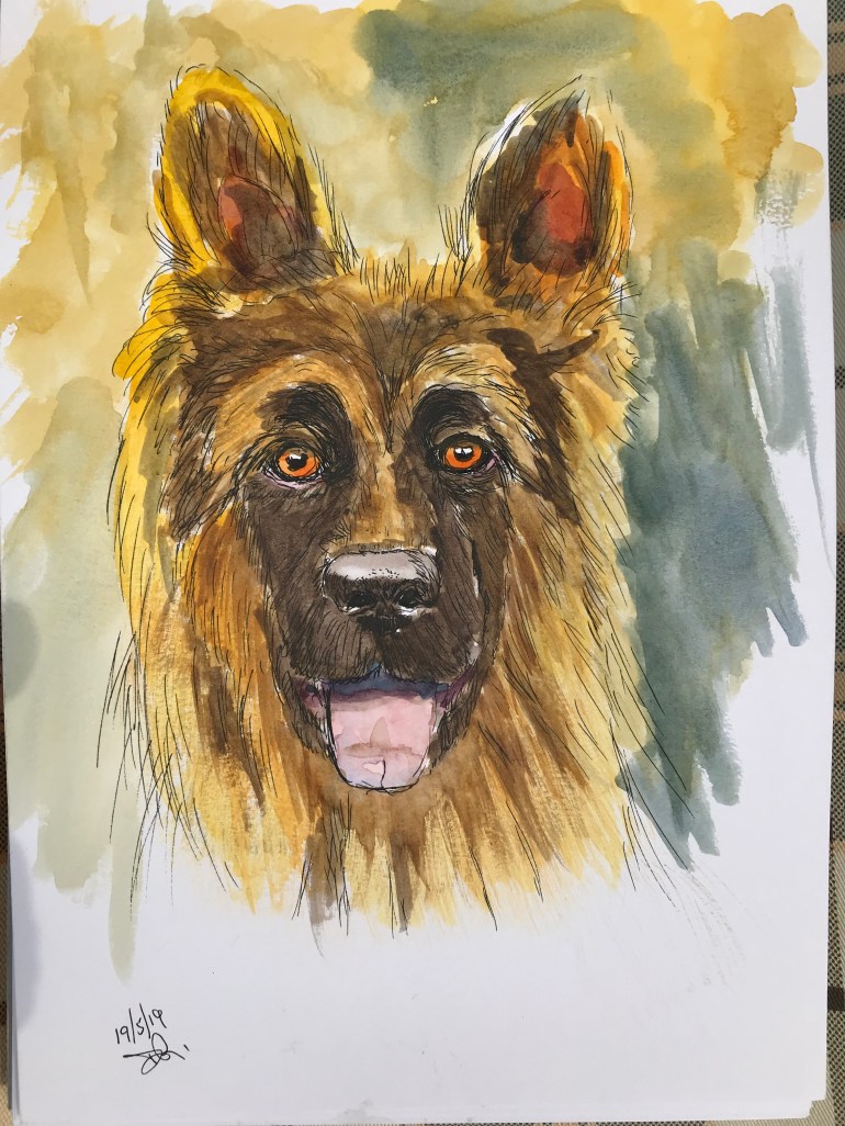 I had a request to paint something other than a Labrador so I tried a German Shepherd, perhaps I should stick to Ladradors!. However someone saw my watercolours at the dog show and asked me to paint their Cavalier King Charles so I have my first commission!