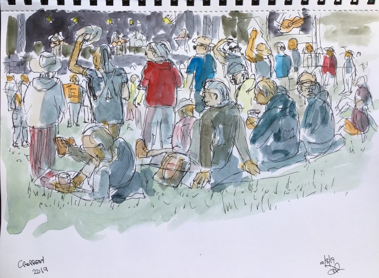Another painting from The Cropredy Festival yesterday. I had to do this in high wind between showers! It was a great credit to the organisers that they kept the field open and made it safe for us all to enjoy some brilliant music despite the severe weather conditions. Thank you Fairport Convention and your wonderful crew for another memorable weekend at Cropredy.
