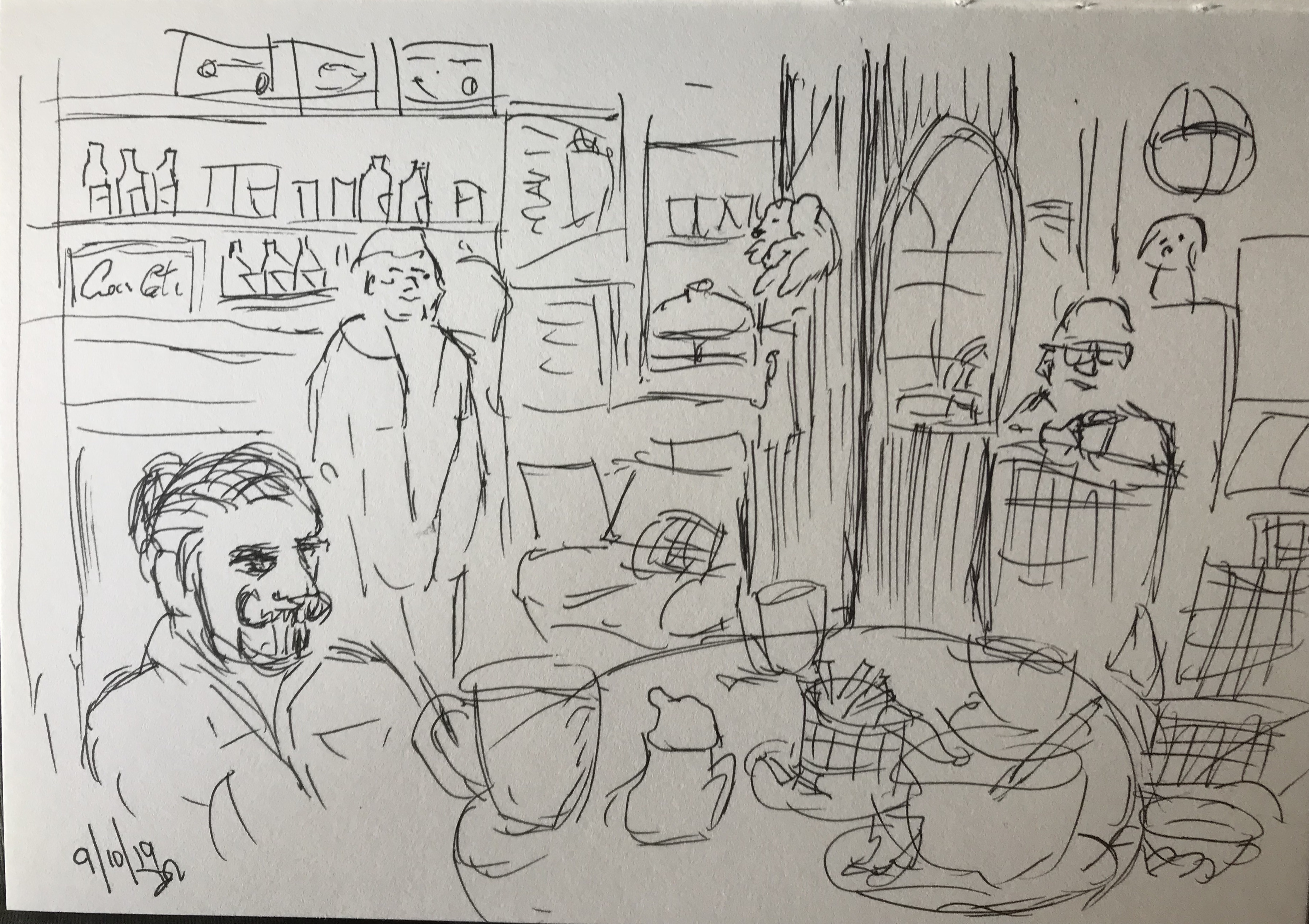 Not much time for drawing today because I went to visit Kevin in Bridport. His son Christopher came down from London so we went to West Bay for lunch and ai managed to do a quick sketch while we were waiting.
