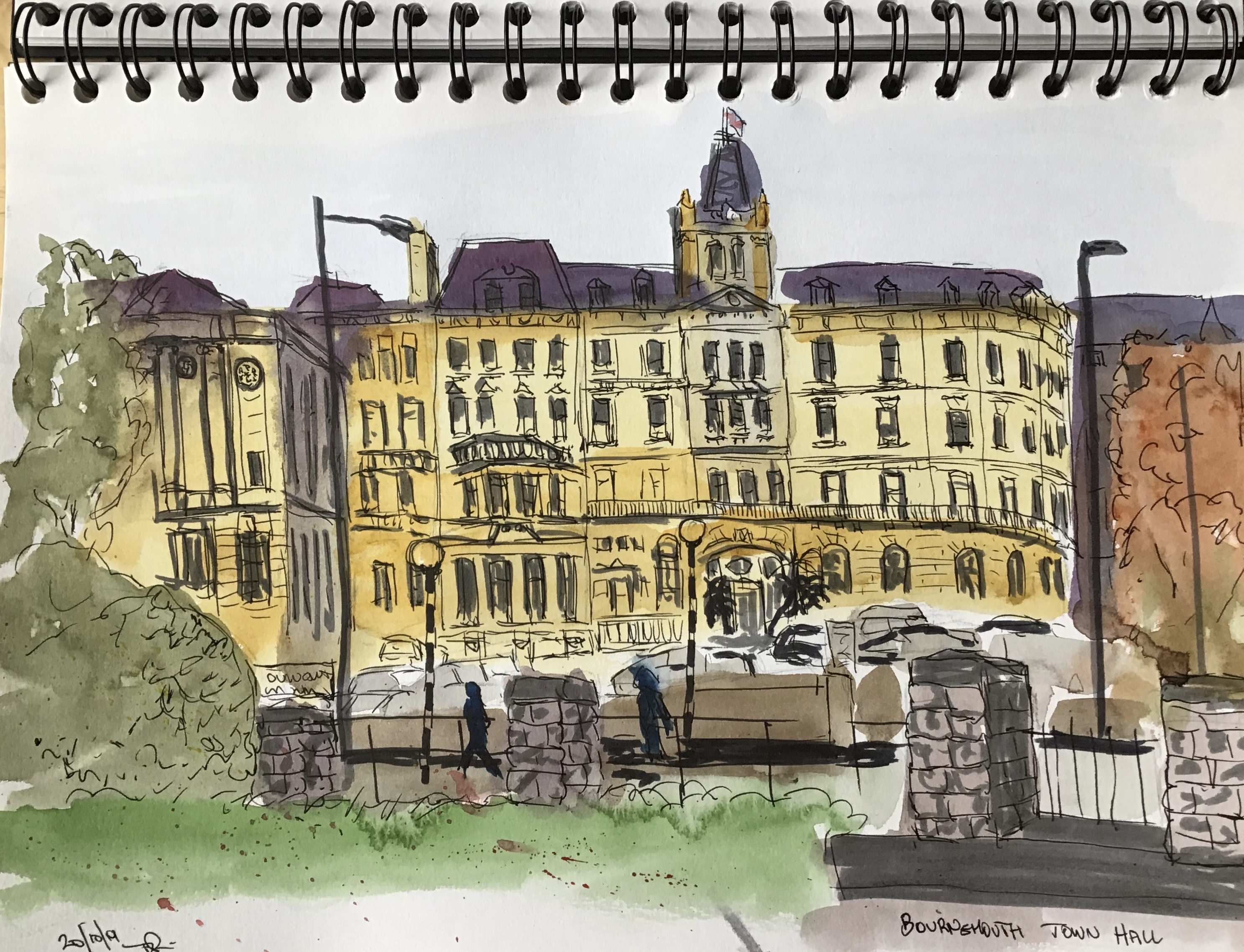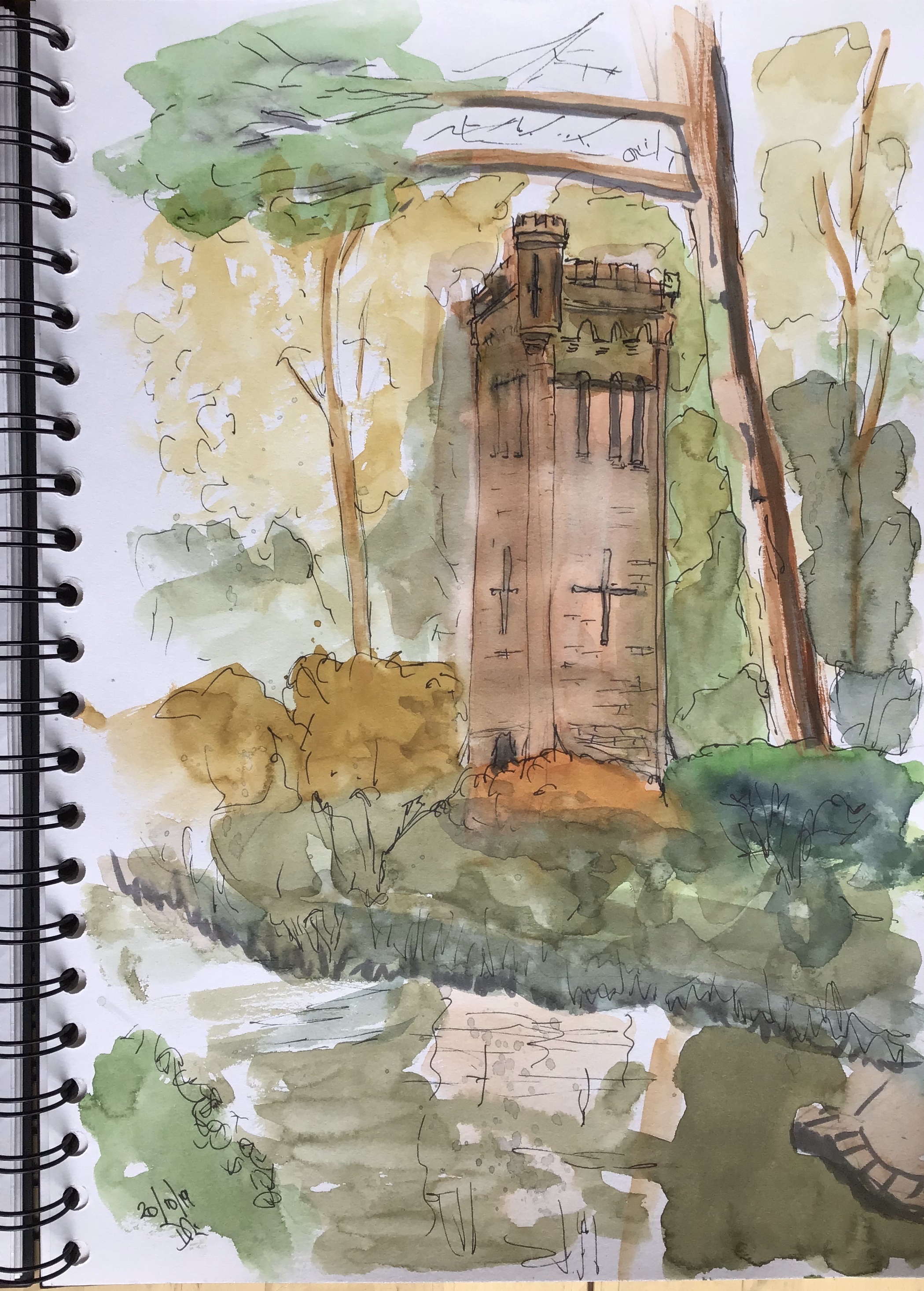 Out with Bournemouth and Poole urban sketchers today. We were in Bournemouth Gardens by the town hall.After lunch I went and found the old water tower that was built to feed the fountains that used to be in the gardens.