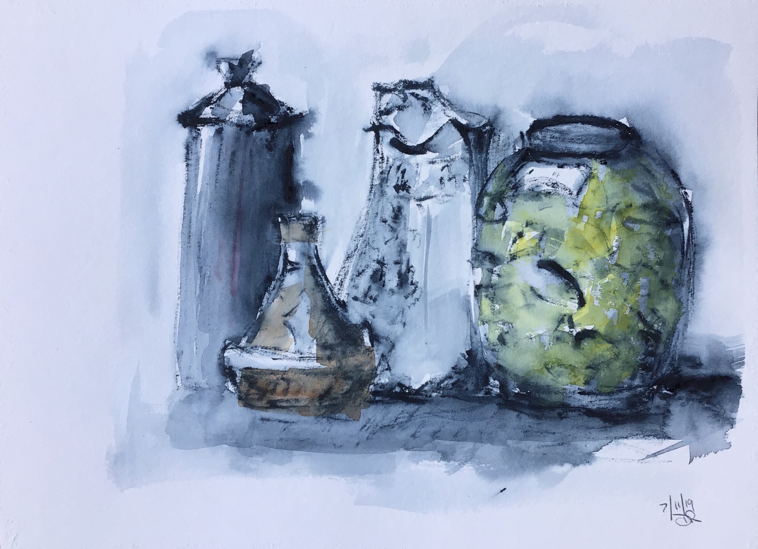 Another class with Frances Shearing today who asked us to draw a still life…with a stick! Still life is not normally my favourite thing but she is so inspirational I had to have a go, I am quite pleased with the result.
