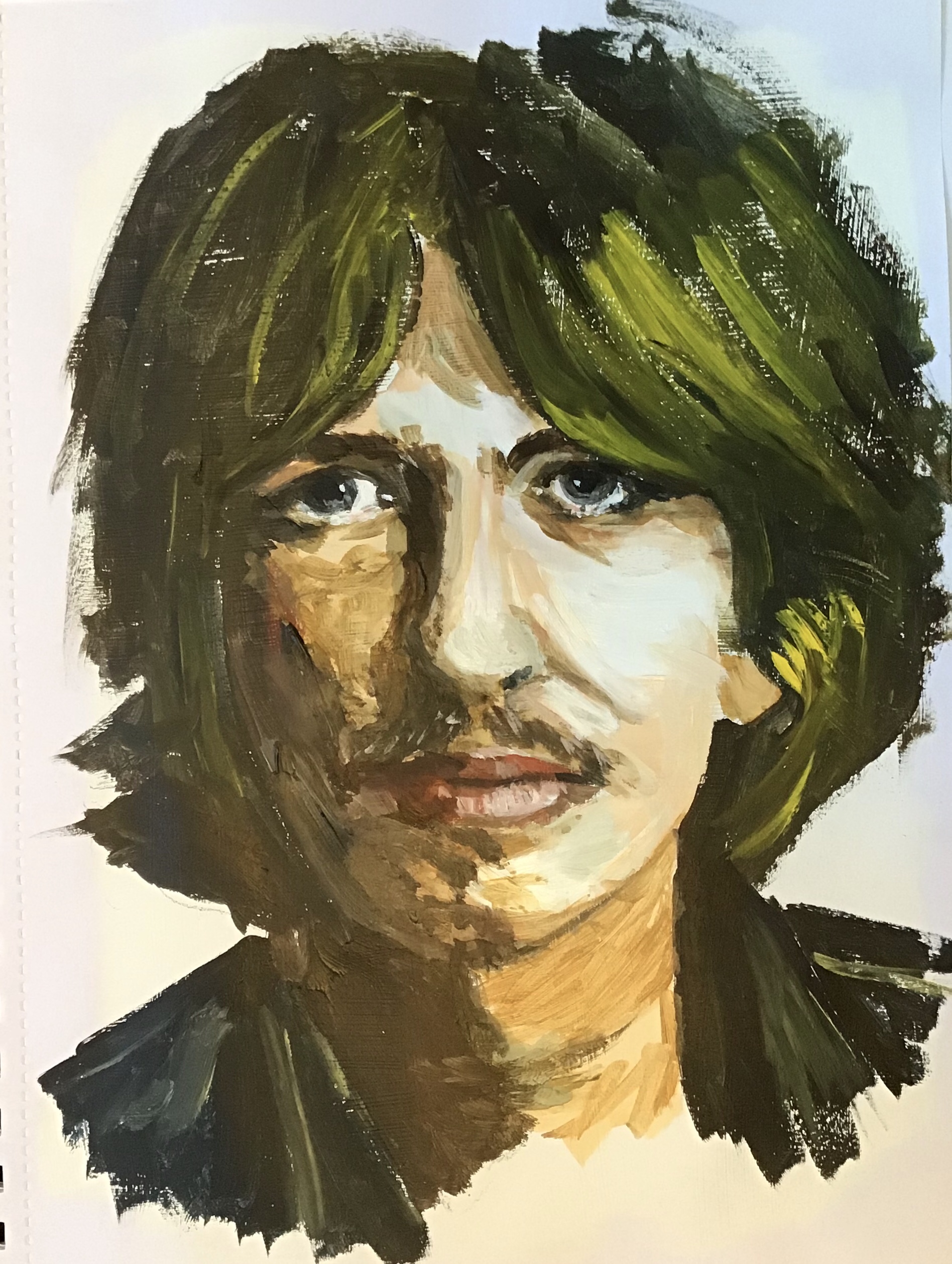 I have been thinking about switching to acrylics for the live portrait sessions at my art group on Tuesday. This is a trial to see if I can can make it work. I chose the subject especially for Anna who has a soft spot for George. I hope I have done him justice.