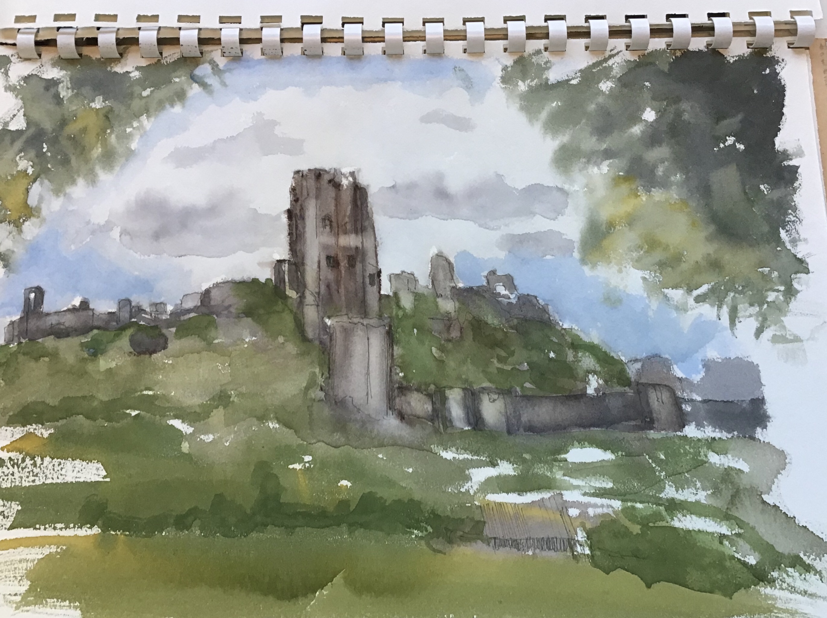 I couldn’t get inspired today so I went back to an old favourite and didn’t another watercolour of Corfe Castle. Not sure it is a great success but it got me painting and thinking ai should be doing a larger version of this view.