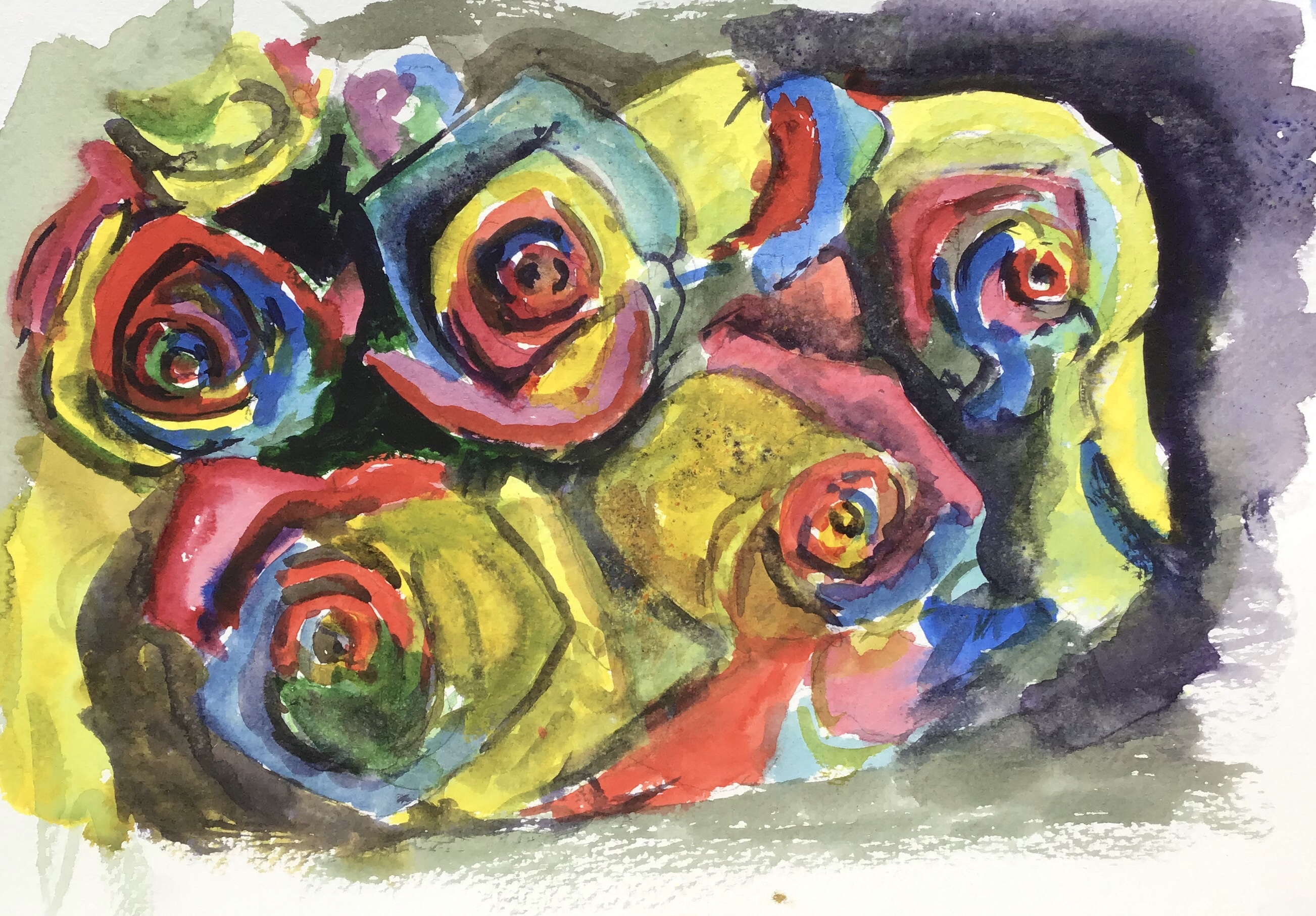 Our watercolour group issues a weekly challenge picture, this week the photo was of bright colourful roses. I had a go but the colours are a bit muddy.
