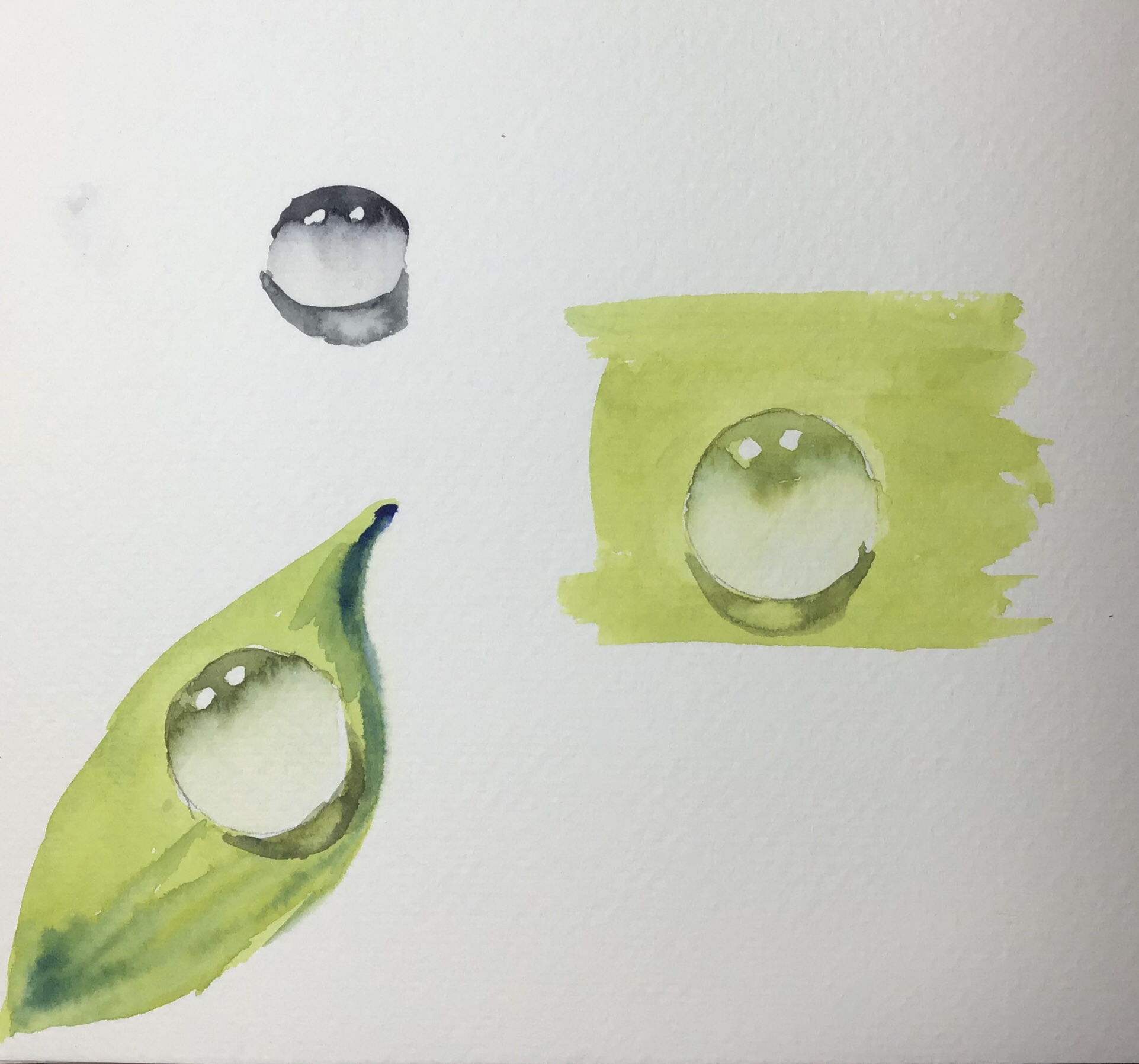 I spent a lot of today working on a painting for our next exhibition, it isn’t ready to post yet so here is an exercise in painting water droplets in watercolour.