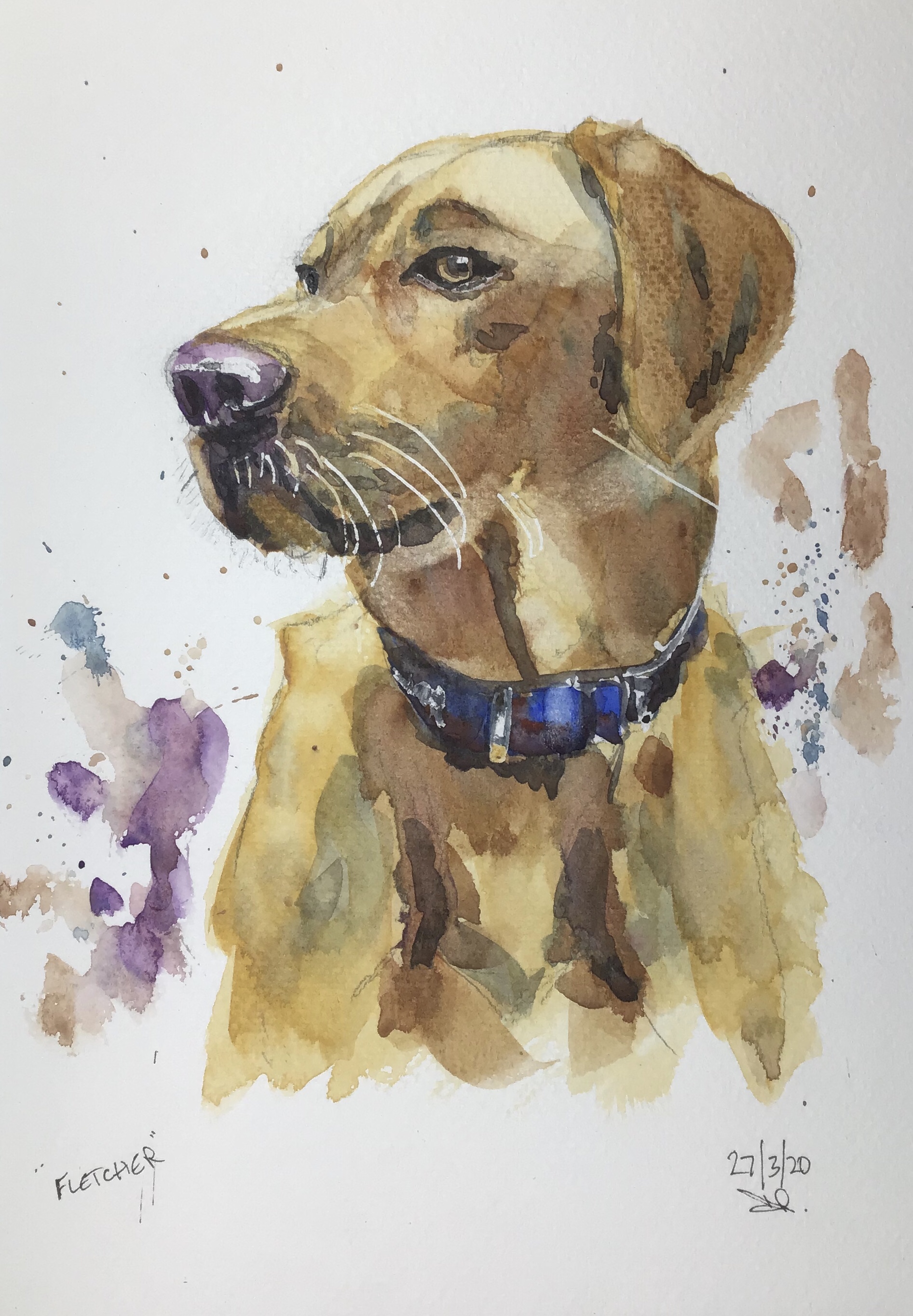 One upside to being isolated is the chance to paint every day. Today I painted a watercolour of one of my labradors Fletcher.