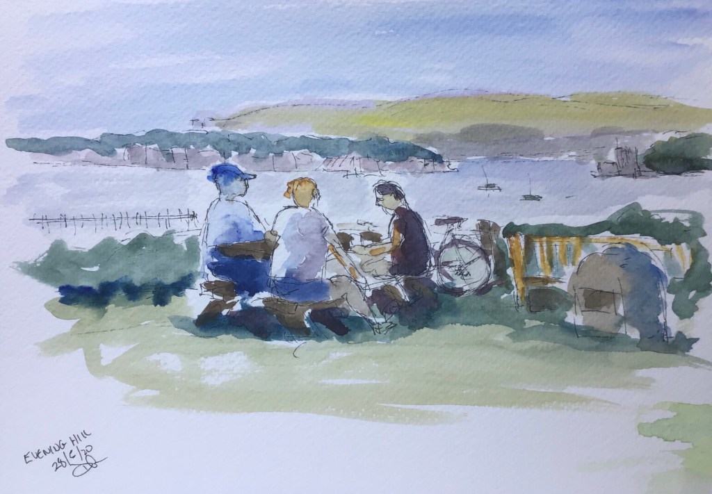 This morning I cycled to Evening Hill which is a viewpoint overlooking Poole Harbour and only a short ride from home. It was great to be outdoors painting again and this post marks a small milestone as it is my 366th consecutive post, well it is a leap year! In fact I have posted every day since 1 January 2019 but an internet glitch one day last May resulted in a missed post and the counter reset to zero.