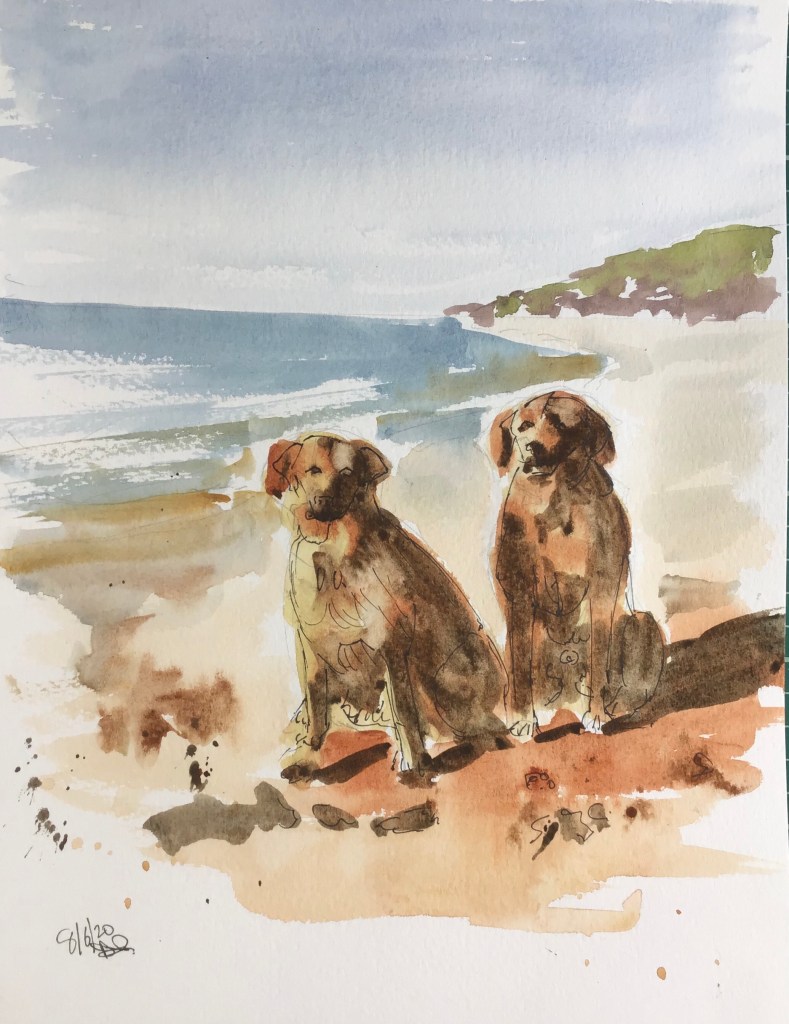 I tried to keep this watercolour of Nuala and Fletcher nice and loose but lost all definition in their bodies soI added a little pen to try and rescue it.