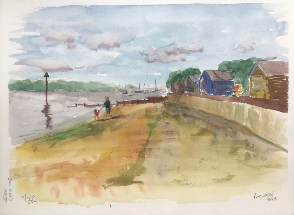 Our first day out en plain air with Broadstone Art Society this morning. We went to Hamworthy Park which has a small safe beach and great views across Poole Harbour. It was good to be out as a group again and easy enough to maintain social distancing.