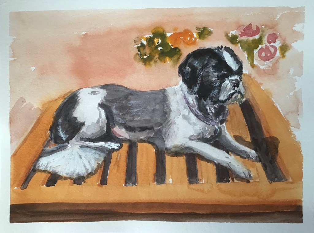 A friend’s dog Harry sadly passed away last week so I thought her mum might like something to remember him by. she hasn’t seen my painting yet but I am sure she doesn’t follow this blog. Please don’t tell her if you know her!