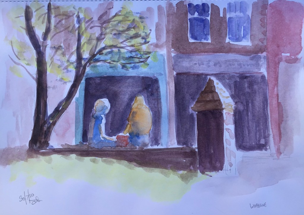 Another picture from our visit to Wimborne yesterday. I was attracted by the sunlight on these two figures sat on a wall in the high street so I tried to capture the contrast with the shop fronts in shadow over the road.