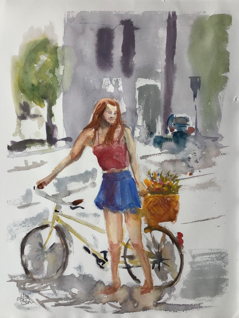 Doing some tidying up at home I discovered three full sheets of very old watercolour paper, probably nearly thirty years old. I cut them into quarters so I could use them. I think they are Daler Romney, the size is very heavy and to start with the water runs off so they seem to work best with very wet washes but I didn’t really find that out until I had almost finished this painting.