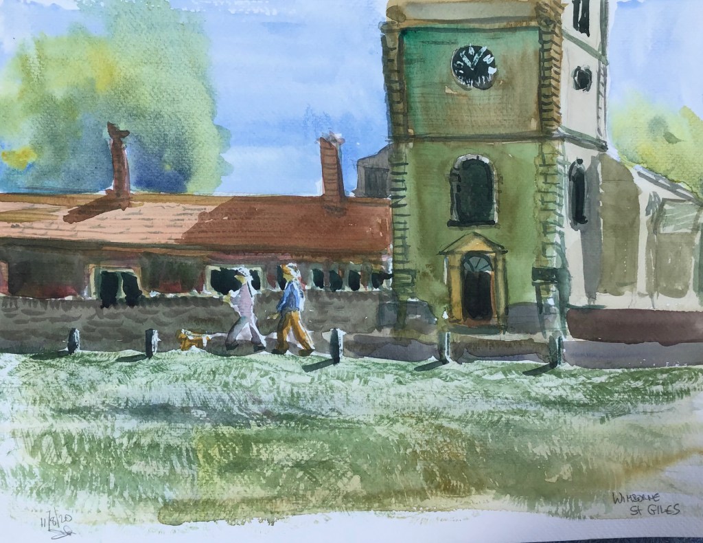 Today’s outing with Broadstone Art Society was to Wimborne St Giles, a pretty Dorset village with thatched cottages and a village green by the church. The locals we’re extremely helpful in letting us use the facilities in the village hall for a small donation to help with cleaning, something much appreciated by the older members (including me!) I don have the patience to do. An accurate drawing of the church and alms houses so I concentrated on light and shade.
