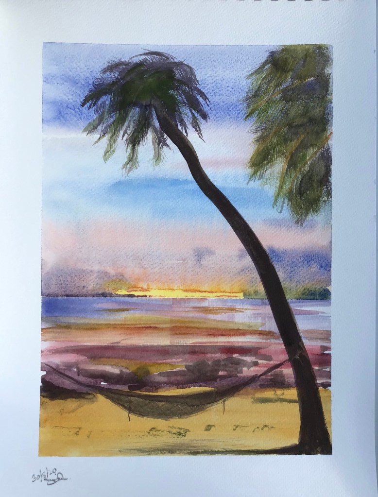 This is the second sunset I have attempted this weekend, the first was awful! This is from a photo I took in Fiji where the sunsets are spectacular and the palm trees pose in front of them.