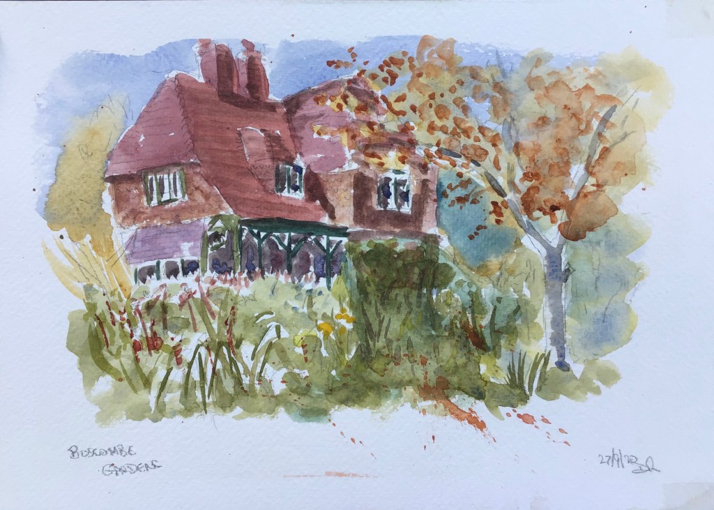 A visit to Boscombe gardens this morning where I was able to do a watercolour sketch of this interesting building by the entrance. I heard someone say it was from the arts and crafts period but I have to admit I don’t know when that was or what features make it so. I will have to do some research (by which I mean Google!)