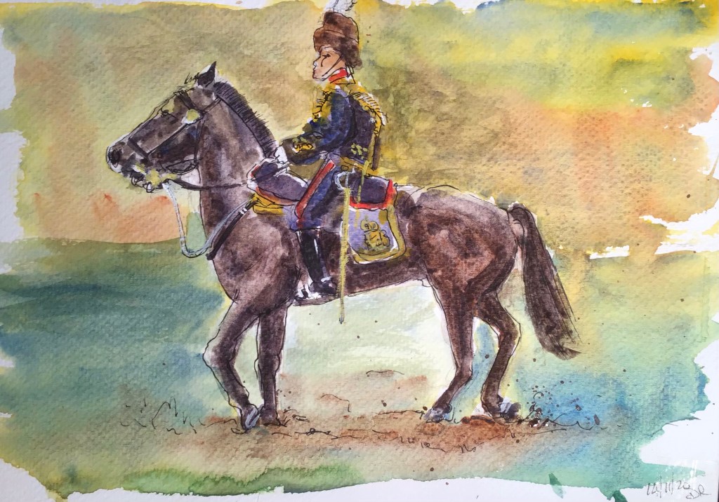 Horses are so difficult to draw, mine always end up looking like pantomime horses! This is from a phot I took at the New Forest Show of an officer in the Kings Troop Royal Artillery.