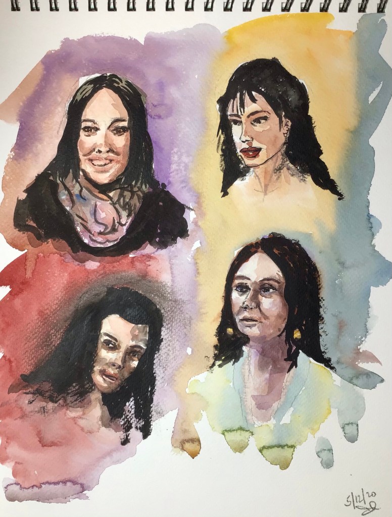 A few exercises in watercolour plus some acrylic ink for some dark hair. I must to stop before I overwork them and lose the freshness of the watercolour.