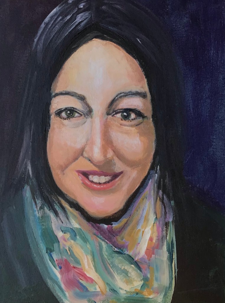 At last I have finished my acrylic portrait of Claire that I started in November! I don’t usually take that long but I got some of the features badly wrong first time and couldn’t work out why so I left it a few weeks and came back with fresh eyes. The model approves so that’s a relief.