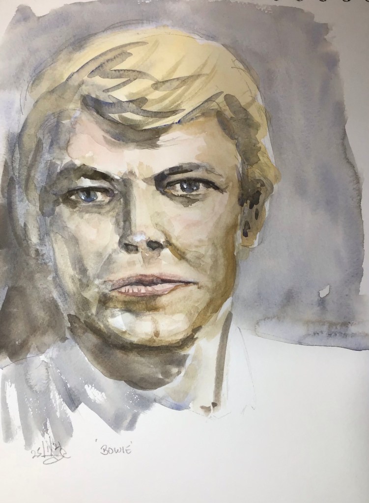 Today’s portrait started out as David Bowie but I lost some of the likeness during the painting process. The trouble with watercolour is there is no going back!