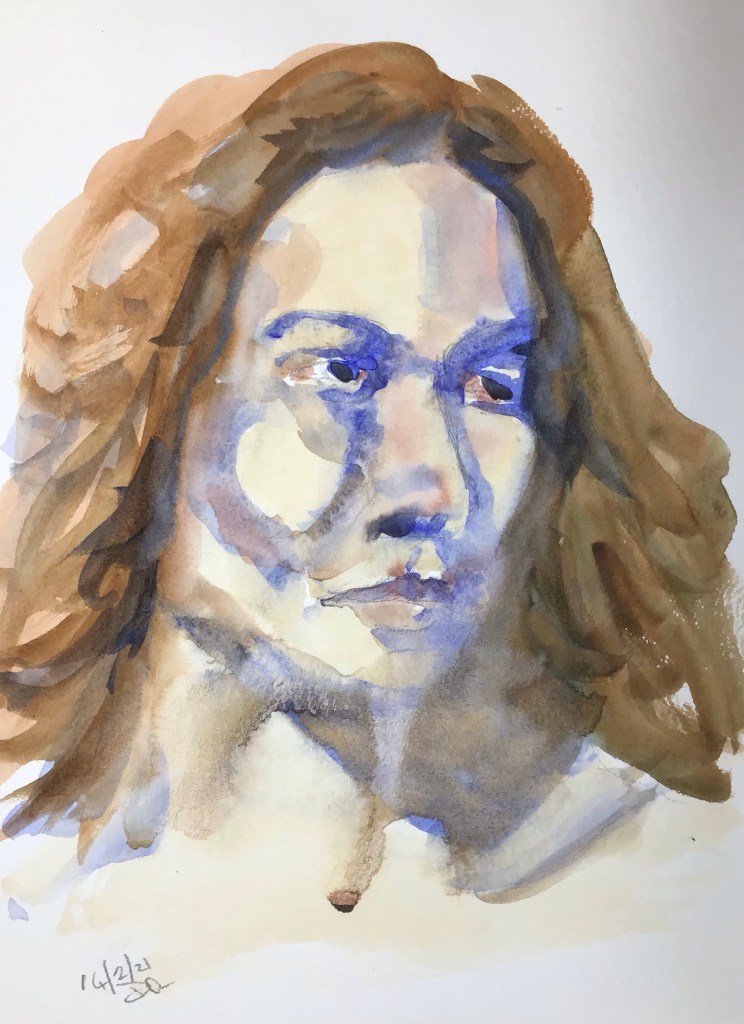 I only had time for a quick watercolour portrait this morning and I didn’t really finish it, however it was fun to do and all good practice although she does look a little sinister.