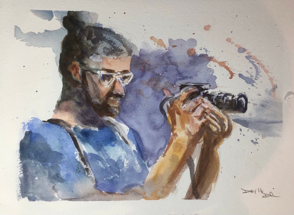Today’s portrait (yesterday’s!) from a tutorial by Michael Soloyev where we slashed lots of colour around. To my mind the most significant quote from Micheal was” In watercolour we start with white paper which represents the brightest light, everything we add is colour and shadow” Food for thought but I don’t think I did it justice.