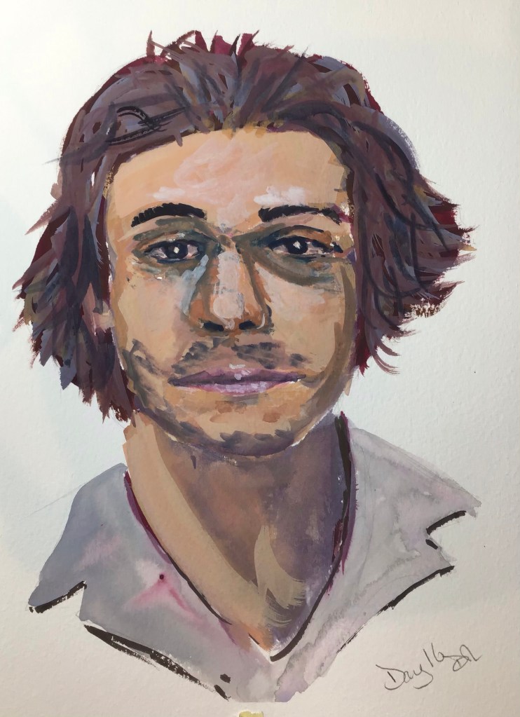 Day 16 of the Sktchy 30 faces in 30 days challenge was another session using gouache. I decided to give it one last try to see if I could master it. I couldn’t! Gouache is so frustrating, the colours dry darker or lighter, never the same as it looked when applied and if you try to paint over it then it goes muddy! I will stick to watercolour for the rest of the challenge.