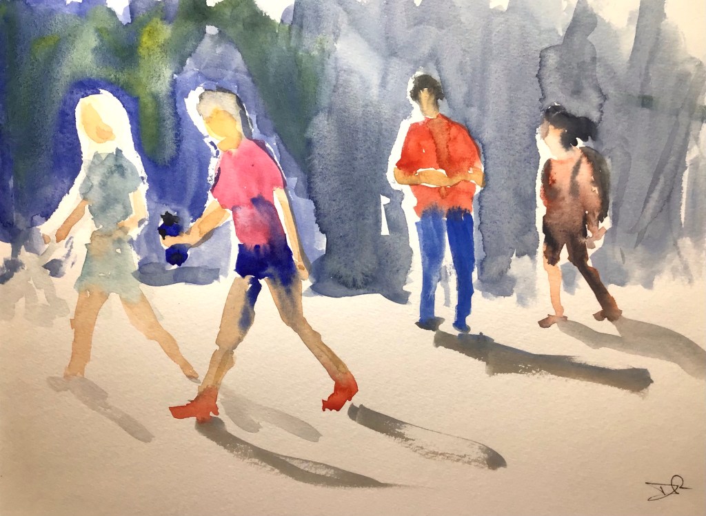 Another sketch from the art market yesterday. I was trying to sketch people walking past using a brush rather than a pencil or pen. The highlights were preserved using a white conte crayon as I didn’t have any masking fluid.
