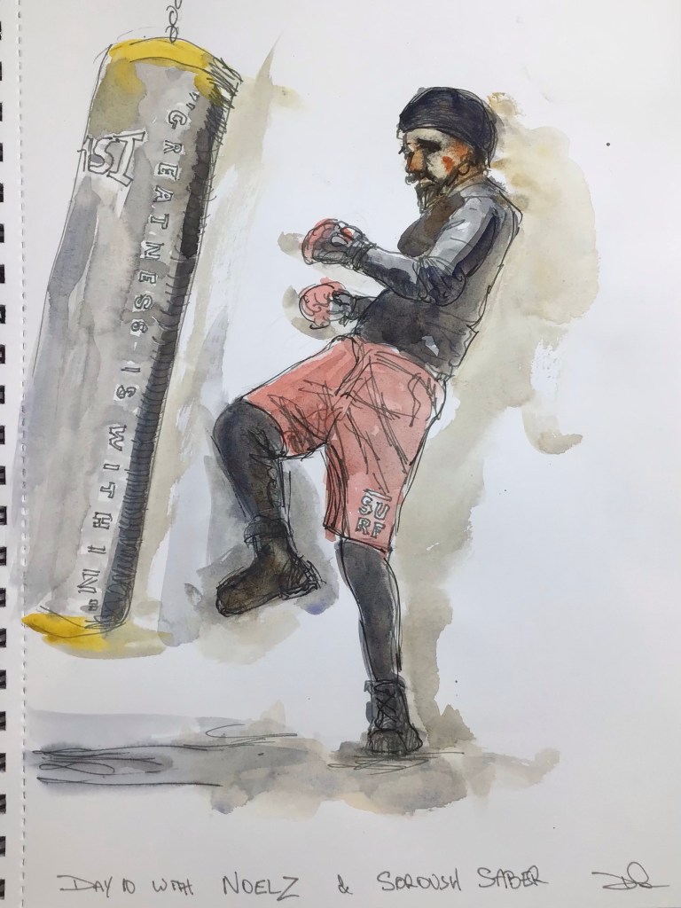 I thought I had better finish the Bodies in motion series before I start the 30 landscapes series so here is day 10, the last day. The tutor did a very detailed pen sketch but I turned it into pen and wash.