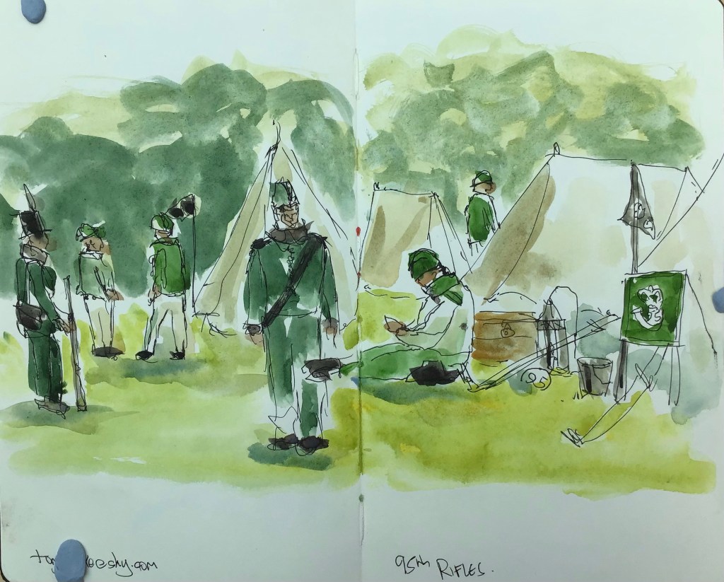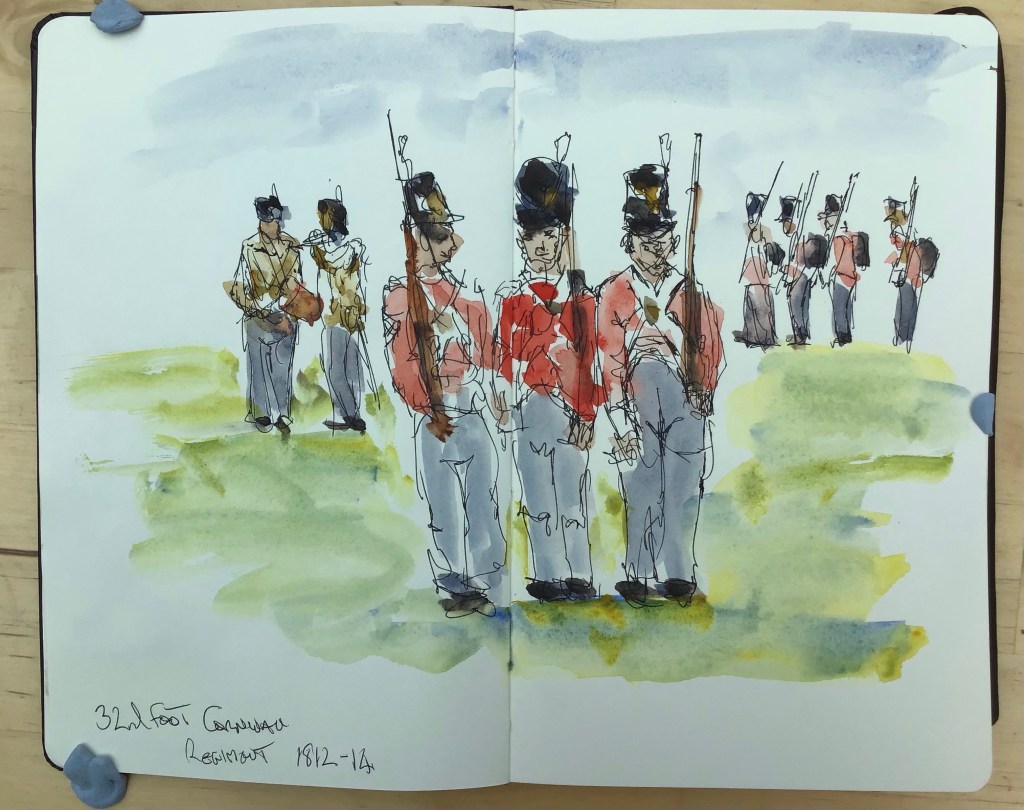 A couple more sketches from the Wimborne History Festival. The 95th rifles, a lot of green in this one! And the 32 nd regiment of foot from Cornwall.