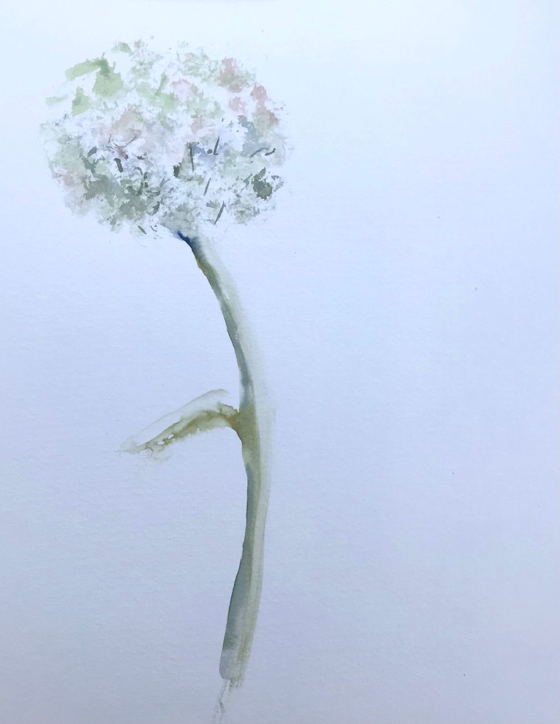 At our watercolour group today we used screwed up tissue paper to paint a hydrangea. I think I painted the stem a little too fat but I like the simplicity of the technique.