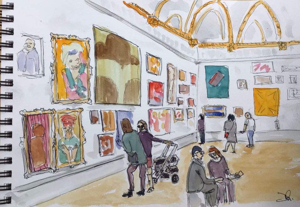 The Royal Academy summer exhibition was fascinating, sometimes inspiring, sometimes challenging and often puzzling as in how on earth did that get accepted! There wasn’t time to sketch on the day but I did take some photos to work from later.