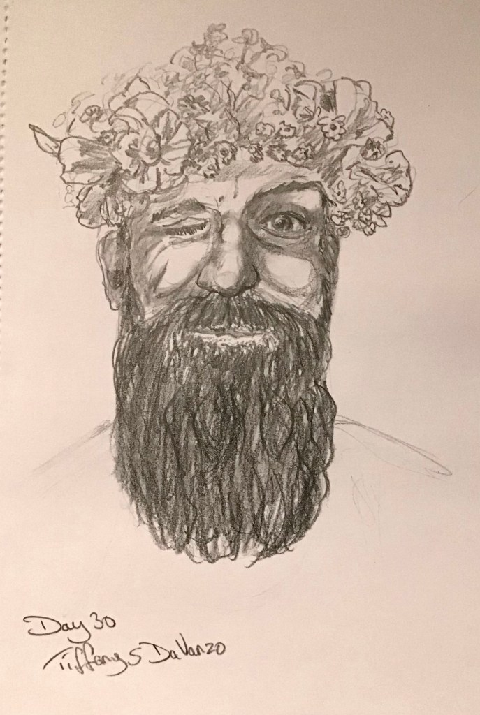 The last day of the 30 faces 30 days challenge with this wonderful model from Tiffany S Da Vanzo. Tiffany drew this with graphite and added dried flowers to finish. Not having any dried flowers to hand I needed to draw it all. This has been quite a challenge finding an hour or so to watch a tutorial and then draw every day but I can see and feel an improvement in my portrait drawings so it has been a worthwhile effort and I would recommend this Sketchy course to anyone who wants to improve their portraits.