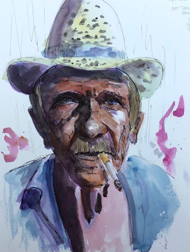 Day 5 of 30 faces in 30 days with artist David Tenorio. My favourite medium is pen and wash but I think I used too much wash and made this too dark.