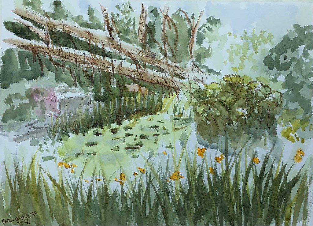 Knoll Gardens invited Broadstone Art Society to visit their beautiful gardens today to do some painting. The weather was good and there were plenty of inspiring subjects. I managed two paintings and a watercolour sketch.