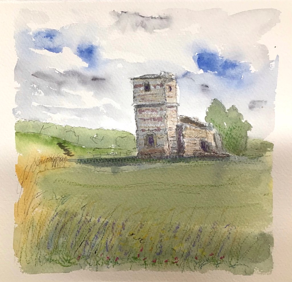 Knowlton church is a popular Dorset landmark and I have been asked to do a painting by someone who has bought my work in the past. I have done four so far and I am not really happy enough with any of them to show my customer! This is today’s attempt.