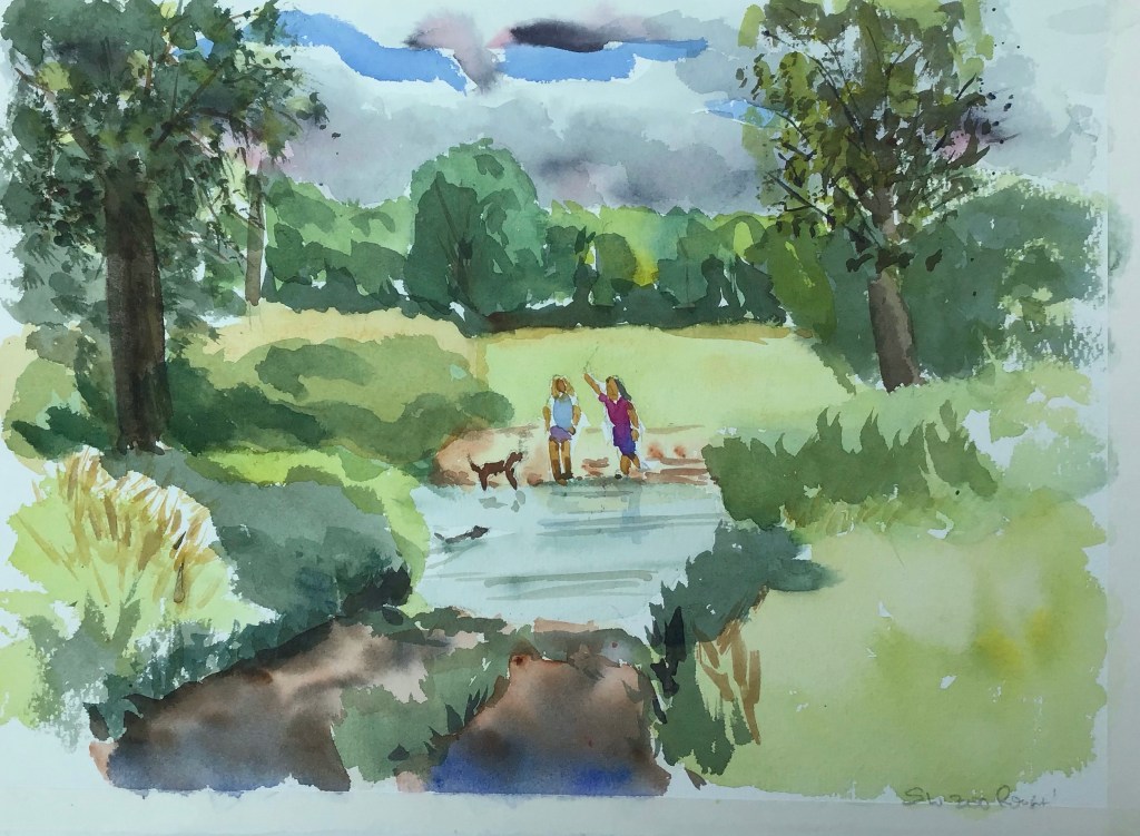 An outing with Broadstone Art Society to Spetisbury today. I have driven the the village hundreds f times on my way to and from work but never really stopped to explore. Iris organised a meeting at Marcia’s lovely farm shop and cafe a short walk from the river. It was very windy and a little challenging to sit and paint but I managed a view of the Ford which is very popular with dog walkers.
