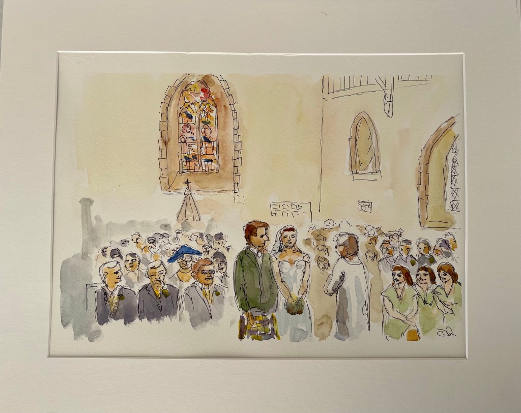 I was invited to a wedding to do some sketching today. I started at the church and did some more at the reception. I also took some photos so I can do a couple more at home. Thanks to Pat and Steve for asking me to sketch their beautiful daughter Clare and her new husband Will on their special day.
