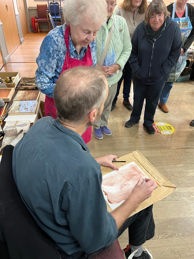 Tom Marshall did a demo for us at Poole and East Dorset Art Society this afternoon. Tom does some great work using all sorts of materials including hand made dip pens, pastels, inks and watercolour. We all joined in and created lots of messy art! Everyone agreed he was a great success.