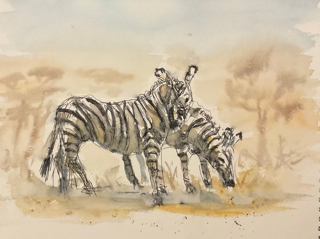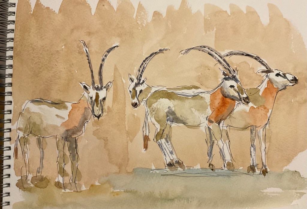I visited Martell Zoo yesterday to try to sketch some animals. Unfortunately it was so cold we couldn’t stop still for very long so I had to finish them off with colour at home. I took plenty of photos and was accompanied by Terry Mullen who is an award winning photographer so I will steal some of his to paint!