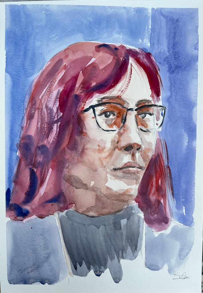 Justine sat for us at Broadstone Art Society this morning. She made a striking model with her red hair and did a great job for us.
