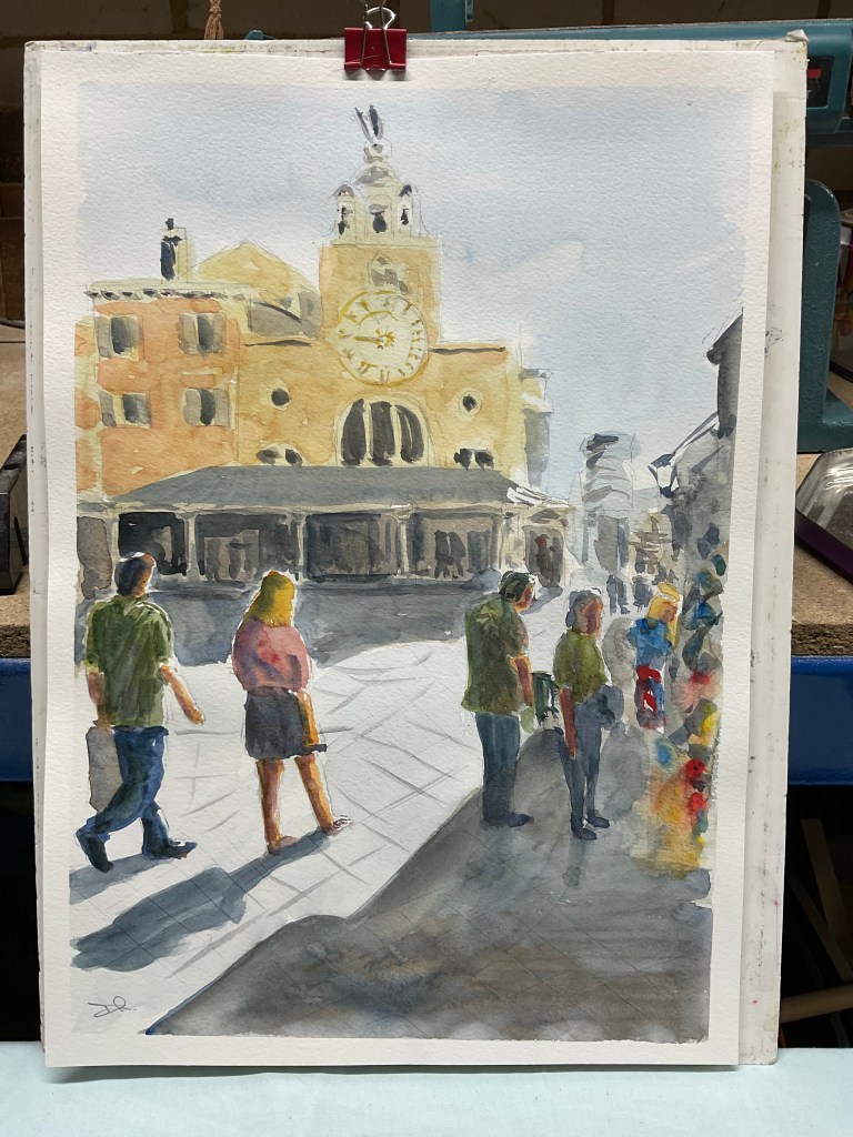 Campo san Giacomo de Rialto, Venice. I took lots of photos of Venice back in September with the idea of being able to paint them on dark cold days in January. Just like today in fact!