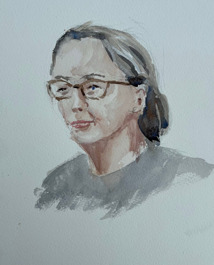 Dagmar sat for us at Broadstone Art Society this morning. Sitting still for an hour at a time isn’t easy but she did a great job for us. I managed a pastel and a quick watercolour portrait.