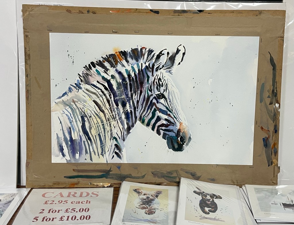 Today’s demonstration at Poole and East Dorset Art Society was the talented and popular watercolour artist Jake Winkle. He enthralled us all with his painting of a zebra while giving us a running commentary on his process and technique. It was a fascinating demo and the end result a beautiful painting.