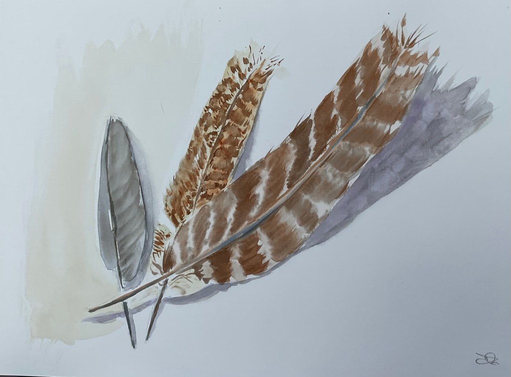 Julie Herring led today’s session at Poole and East Dorset Art Society. Julie brought along a selection of natural objects for us to draw and paint. I chose to paint these feathers with watercolour to help me with my bird paintings.